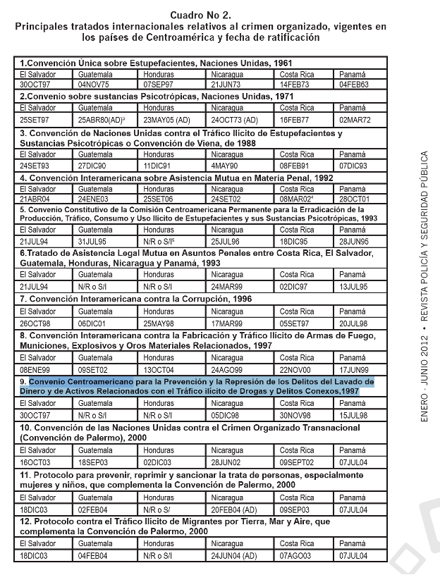 - Inter-American Convention Against CorruptionConvenio Centroamericano Para La Prevención Y La Represión De Los Delitos De Lavado De Dinero Y De Activos, Relacionados Con El Tráfico Ilícito De Drogas Y Delitos Conexos